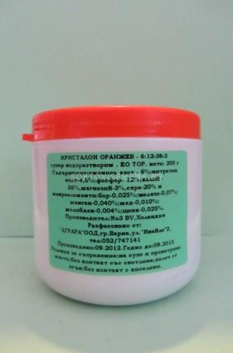 Кристалон оранжев има ниско съдържание на Азот и високо съдържание на Калий. Съдържа Магнезий и напълно хелатирани микроелементи, включително Желязо. Подобрява оцветяването на червените зеленчуци и плодове. Може да се прилага при отглеждане на открито и в оранжерии.