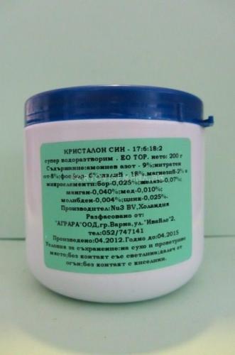 Кристалон син е универсална формулация, подходяща за торене на всички култури във фаза вегетативен растеж. Съдържа Магнезий и напълно хелатирани микроелементи, включително Желязо.