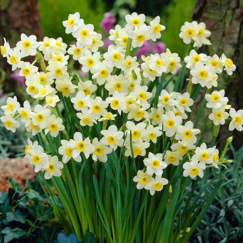 Нарцис (Narcissus) е от семейство Кокичеви. Съставен от 60 вида, произхождащи от умерените райони на Централна и Западна Европа, Западна Азия, Северна Африка. В нашата флора не се срещат представители на този род. Много видове от рода отдавна се ценят и се отглеждат като декоративни растения. Създадени са над 12 000 култивирани сорта със сложен хибриден произход, обединени под наименованието Narcissus x hybrida hort. Новите сортове имат по-едри цветове, по-стабилни дръжки, по-разнообразни багри на цветовете – бели, кремави, жълти с различна интензивност. Различните видове цъфтят от март до май и достигат от 20 до 60 см височина. Като останалите луковични растения, нарцисът се размножава чрез стари и нови луковици, които трябва да се садят през есента на дълбочина 10-15 см. Обича слънце или полусянка и вирее във всяка градинска почва.
